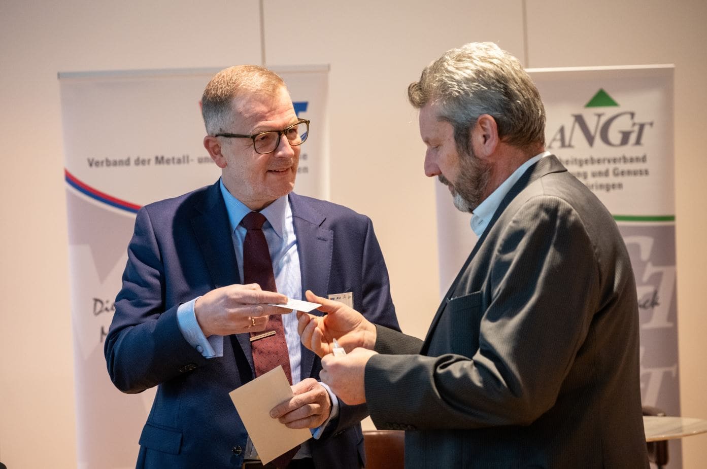 „Mit der Geschäftsstelle in Zella-Mehlis sind wir seit drei Jahrzehnten in Südthüringen präsent und waren von Beginn an nah bei den hiesigen Firmen. Das war und ist uns immer wichtig und auch Geheimnis unseres Erfolgs. Mit der heutigen Staffelstabübergabe heute endet eine Ära und zugleich beginnt etwas Neues. Mein geschätzter Kollege Achim Mertens ist eher einer von der alten Garde, der seine Arbeit gemacht hat und von den Firmen geschätzt wurde. Wenn sie Unterstützung brauchten bei Betriebsvereinbarungen, Haustarifverhandlungen, Gesetzeserklärungen oder Gerichtsverhandlungen sowie zahlreichen anderen Themen, war er ein kompetenter Begleiter. Unser Ziel ist es, uns noch breiter in der Südthüringer Gesellschaft, den Verbänden, Vereinen und Kommunen zu verorten“