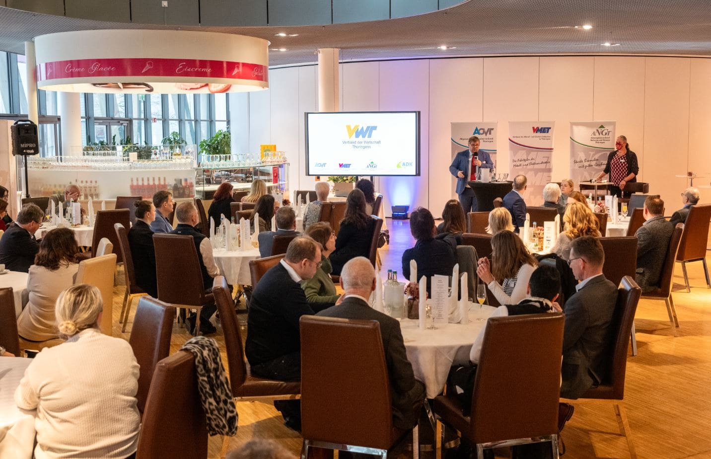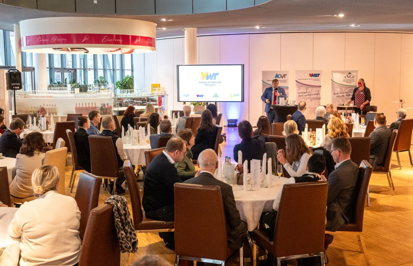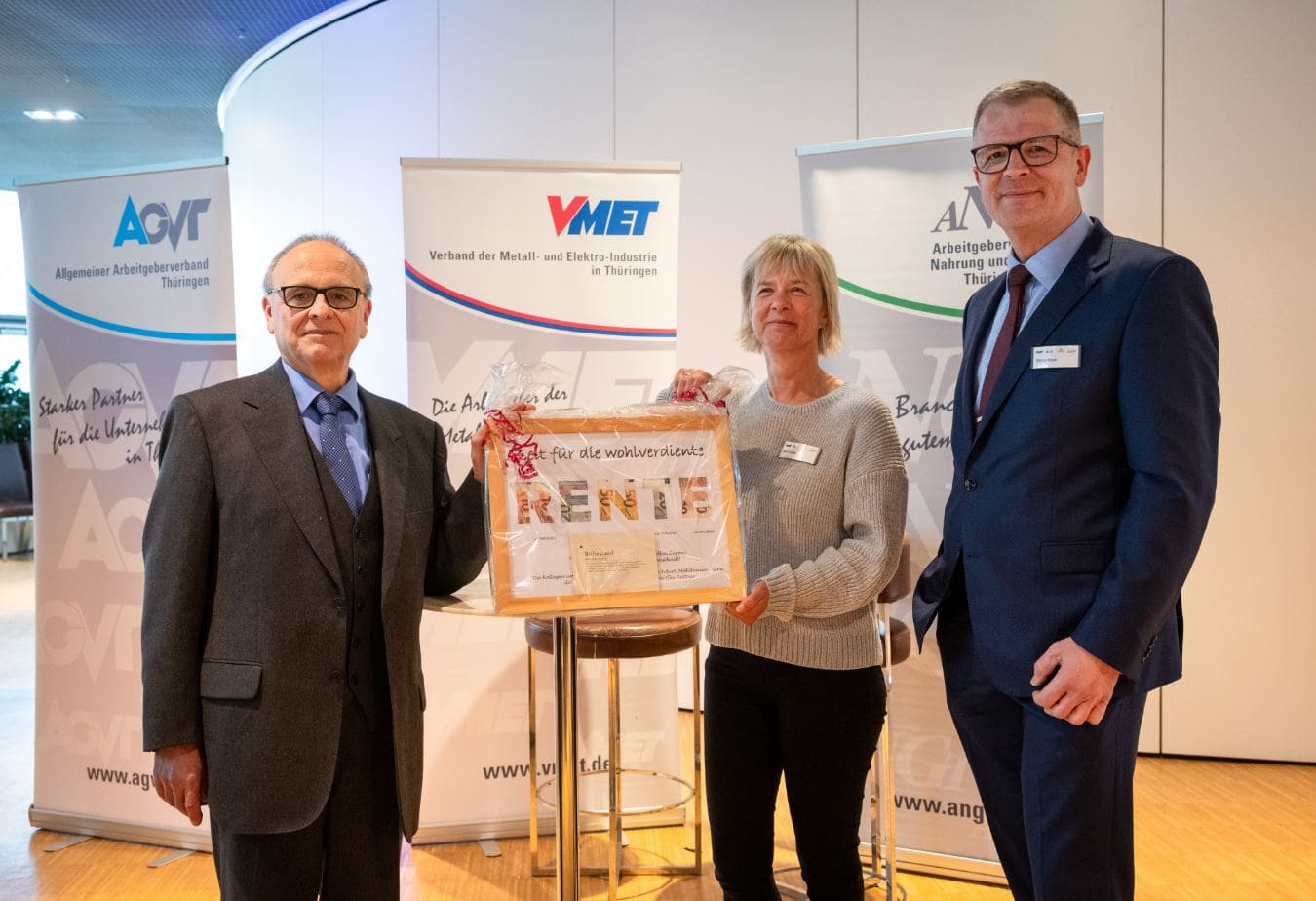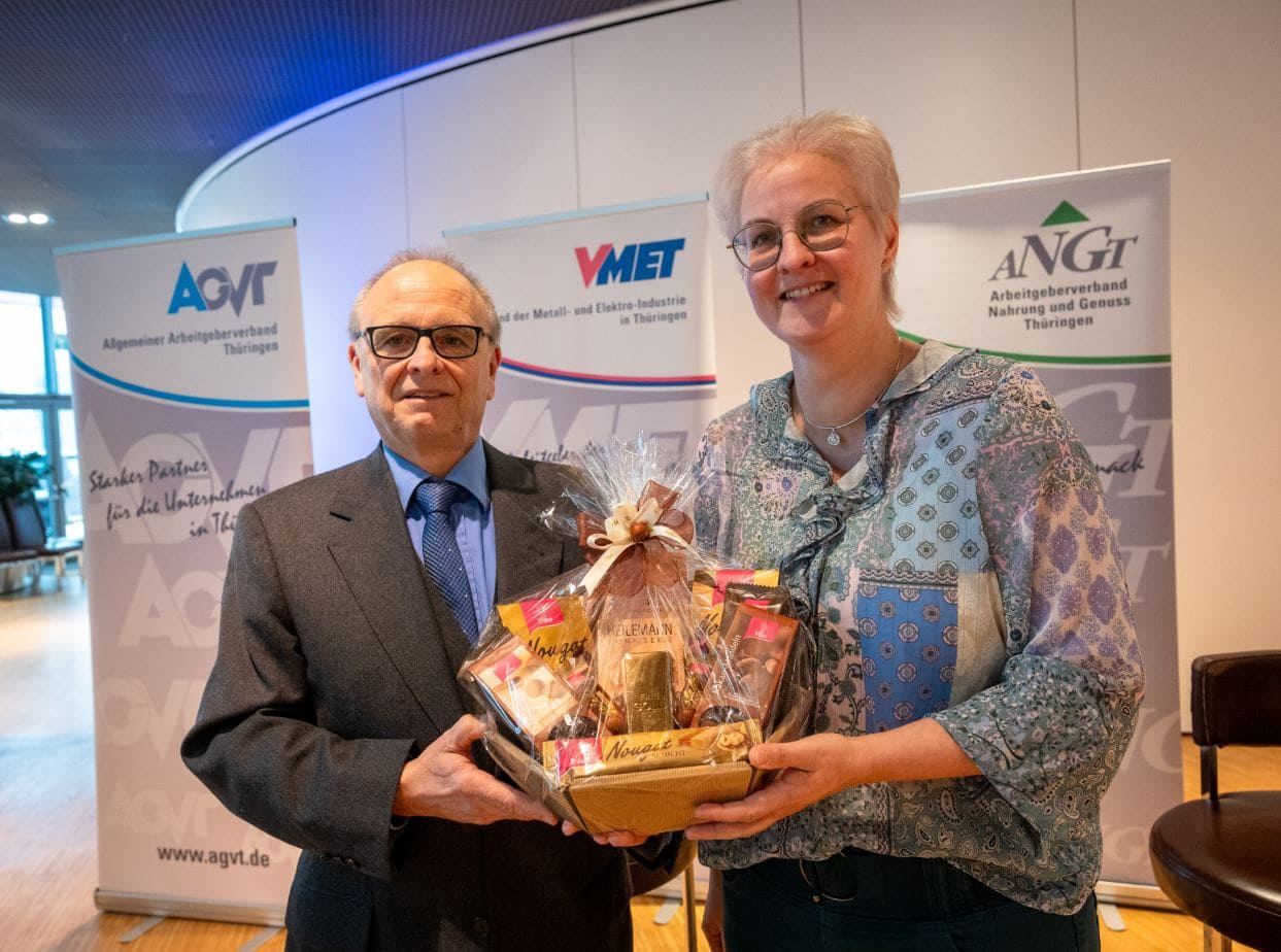 „Viba Sweets in Schmalkalden ist nicht nur ein „süßer“ Ort, sondern auch ein beeindruckender Ort, vor allem mit einer erfolgreichen Firmengeschichte für die "Staffelstabübergabe“ der Geschäftsstelle Zella-Mehlis der Thüringer Arbeitgeber- und Wirtschaftsverbände AGVT, VMET, ANGT und ADK. In der betrieblichen Praxis in Südthüringen sind die Firmen – je nach Branche – in einem der Verbände Mitglied. Was etwas kompliziert klingt, ist eigentlich einfach. Die Mitarbeiterinnen und Mitarbeiter arbeiten unter dem Dach einer Bürogemeinschaft in Erfurt und bieten Unternehmen, die bei uns freiwillig Mitglied sind, verschiedene Leistungen an. Dazu gehört ein Leistungspaket mit arbeitsrechtlicher Beratung, übergreifenden Netzwerken und exklusivem Austausch verschiedener Managementebenen, dem Austausch mit Landes- und Bundespolitikern sowie der Medienarbeit.“
